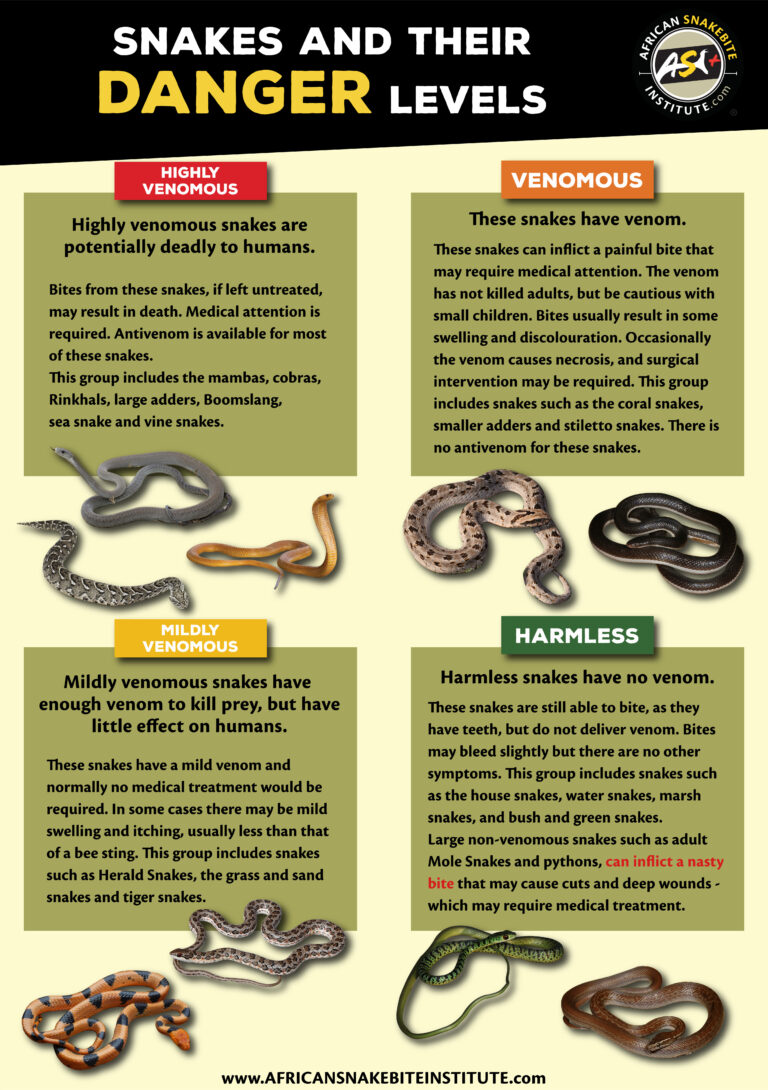 We’re often asked about snakes and the danger levels assigned to them. Here’s some helpful info to explain the differences between Highly Venomous, Venomous, Mildly Venomous and Harmless.