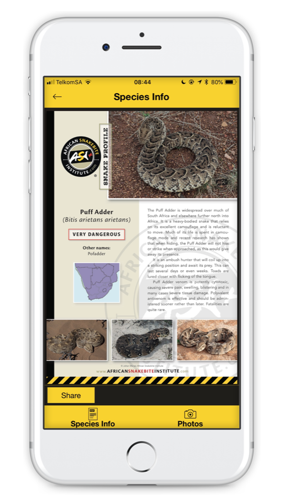 The first time you access certain content in the app (such as Snake Profiles, First Aid Info, the Snake Removals List, etc.) the relevant data will be downloaded to your device.