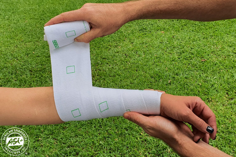 The pressure bandage must remain in place until the victim is hospitalised. It can be used in conjunction with a splint which will prevent the limb from moving and reduce muscle contractions which will stimulate the lymphatic system and spread venom quicker.