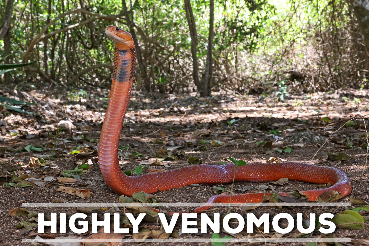 The following snakes have caused human fatalities. A bite from these snakes should be treated as a medical emergency and the victim should be treated in a hospital or clinic. Antivenom may be required. Above – Red Spitting Cobra (Naja pallida)