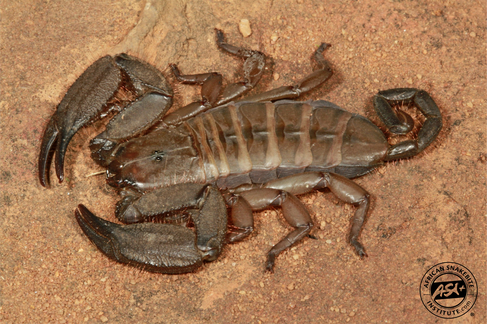 A large scorpion of around 13 cm with the tail extended. This species is usually tan to brown in colour often with a lighter telson (stinger) and pale legs. It is endemic to South Africa and known from around Kranspoort and the ridges around Emalahleni.