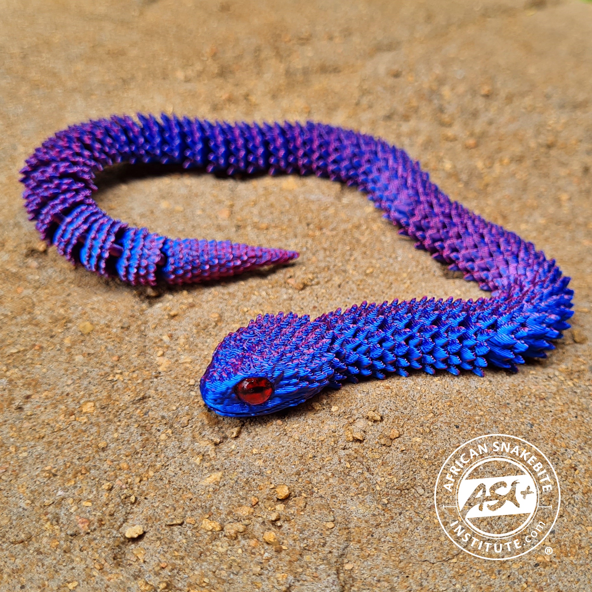 Intricately designed 3D-printed articulated snake. Flexible joints mimic the realistic movements of a serpent.
