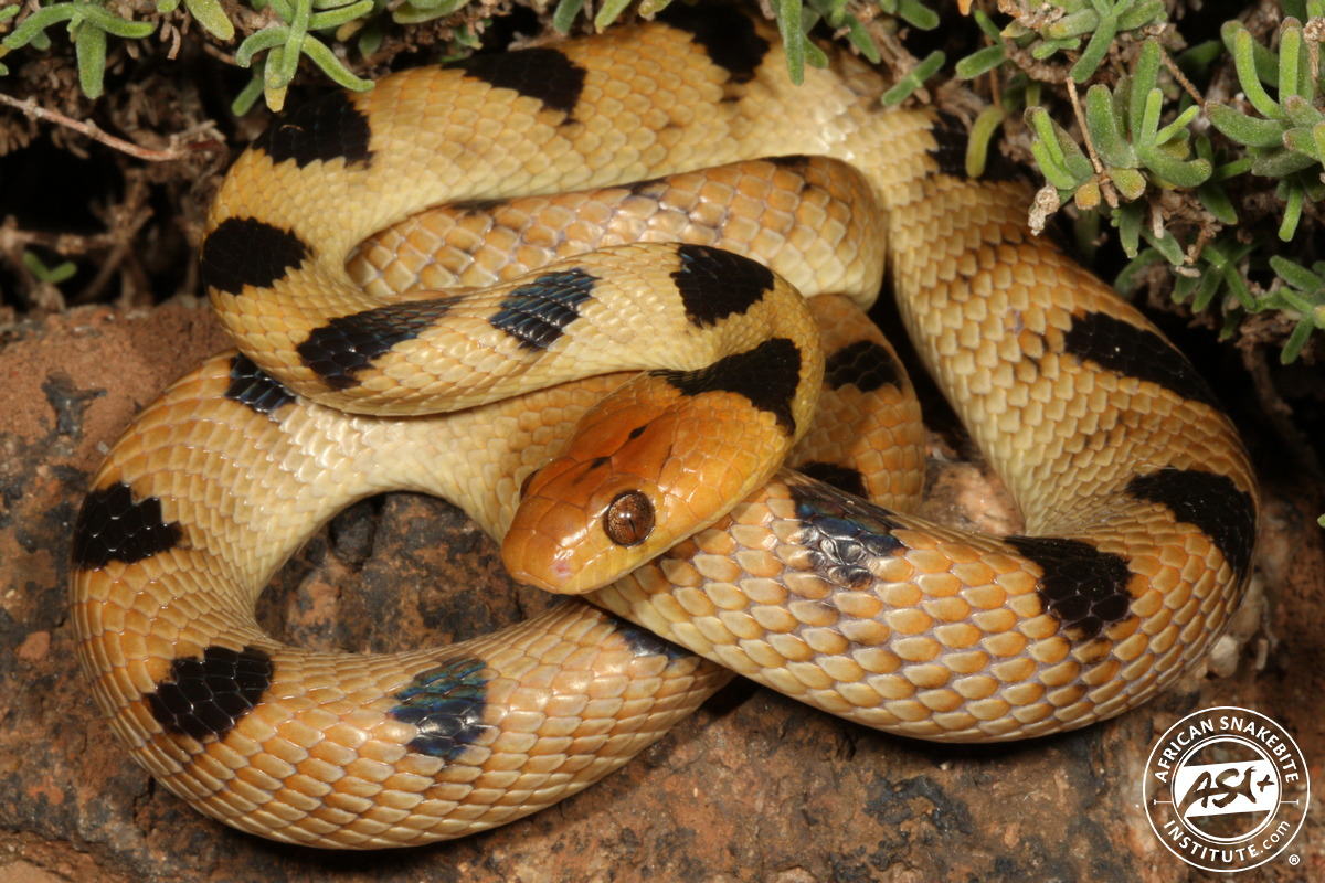A beautifully-marked nocturnal snake that averages 40-60 cm with a maximum length of 68 cm. It inhabits the rocky arid regions of Namaqualand and the Karoo extending into southern Namibia. This snake is quite common in some areas and often killed at night on roads by passing vehicles.