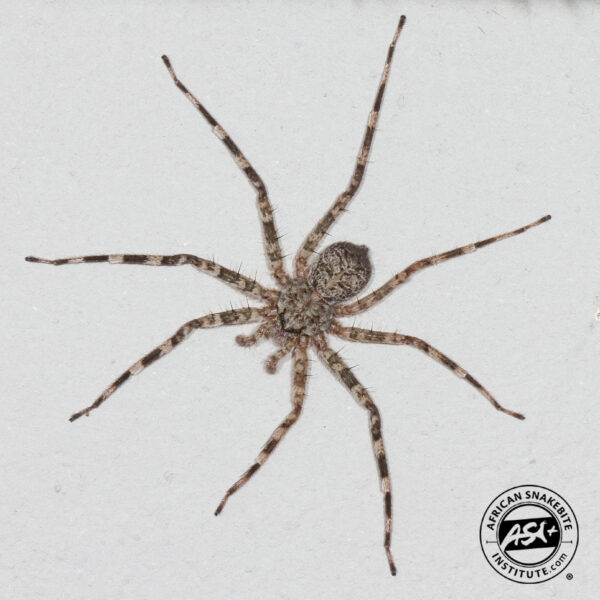 These strange-looking spiders are flattened in profile, giving them the common name of Flatties or Common Wall Spiders. They are common in houses, garages and around large boulders. In the house they live on the walls or upside down on the ceiling. They are a bit larger than a R5 coin. They hunt insects such as mosquitoes, moths and flies. The are usually brown to grey with stripes and bands making them camouflaged on rocks. They are completely harmless to humans and pets.