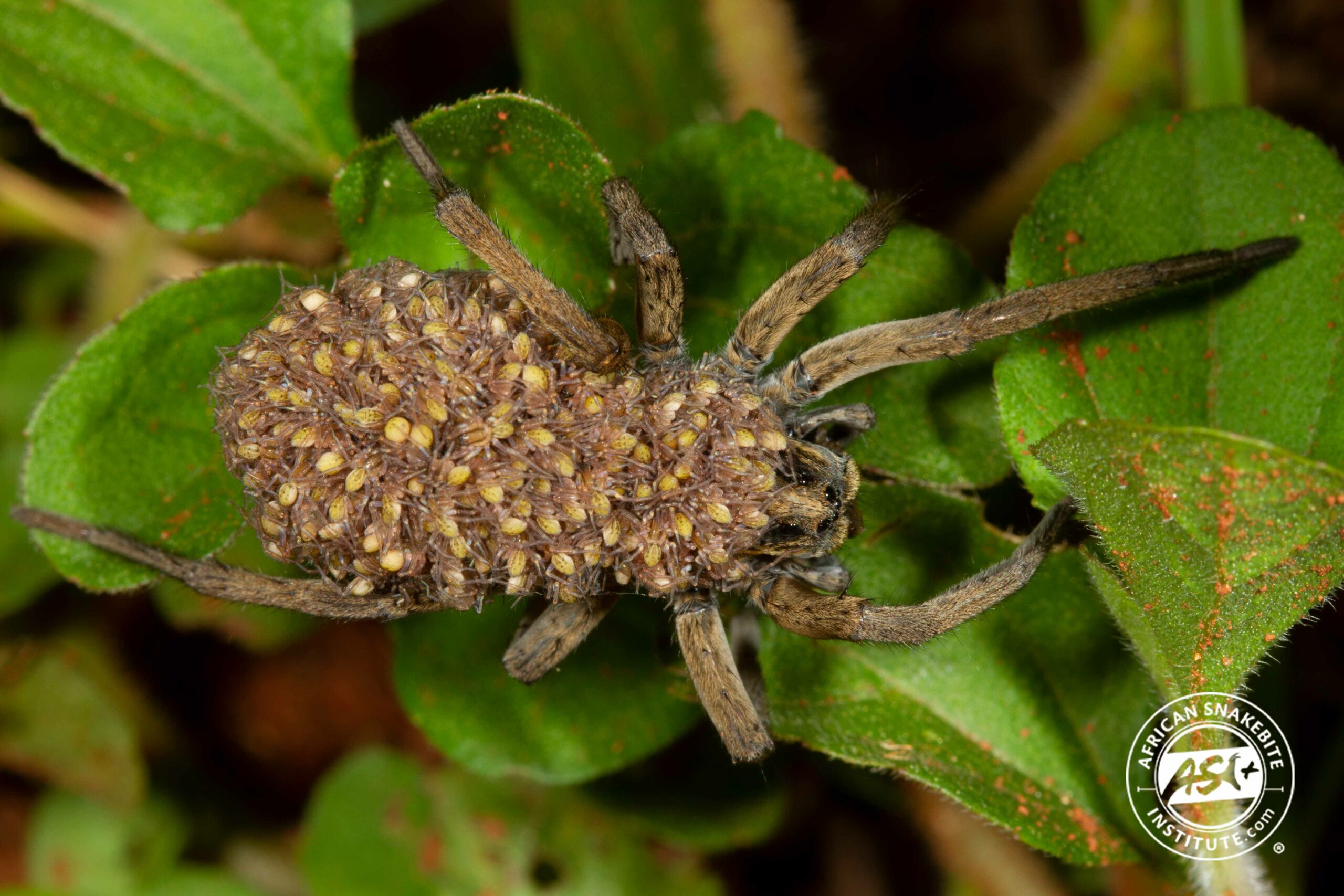 These spiders are very common in the garden and occasionally come into the house. They are usually smaller than a R5 coin. The Wolf Spider is grey to brown in colour usually with a pale stripe down the back bordered with two darker stripes. They can be found hiding under plant debris and under rocks. They are free living or found in open tube silk burrows. They are harmless to humans and pets and seldom attempt to bite.